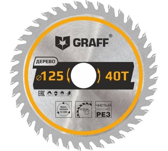 Пильный диск по дереву для УШМ 125x1.2/2x22.23/20/16 мм, 40Т GRAFF 21112540 предназначен для поперечного или продольного распила древесины, ДСП, фанеры и МДФ.
