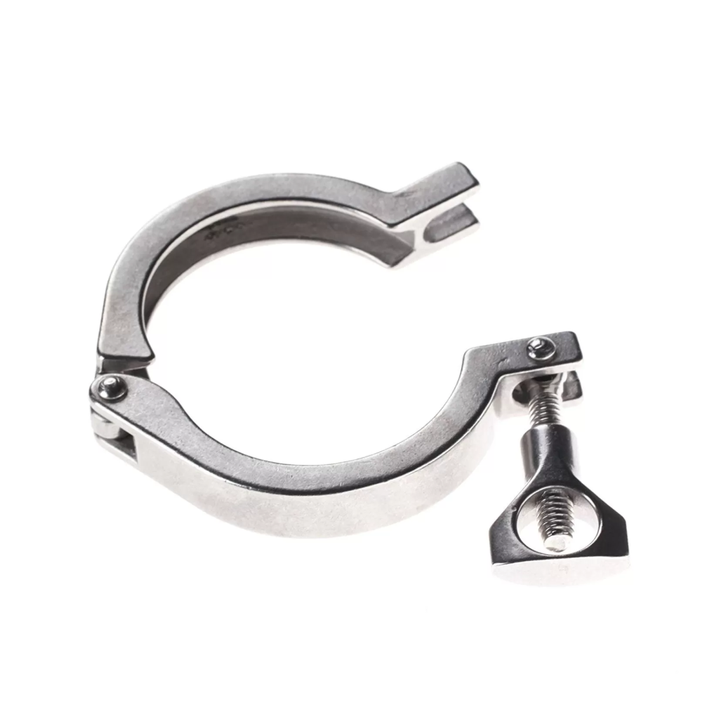 Детали колонны скрепляются с использованием хомут-зажимов, отвечающих за плотность сцепки. Хомут для кламповых соединений – это элемент быстроразъемного соединения, фиксирующий зажимные штуцера и уплотнение между собой в единую, герметичную систему. Надежность крепления обеспечивается винтовым зажимом. Установка не займет много времени и не потребует больших усилий.