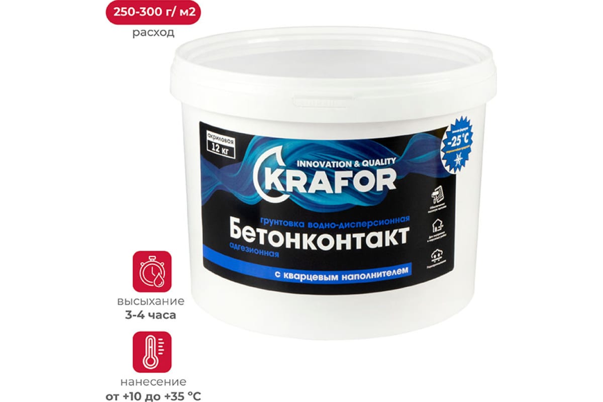 Грунтовка водно-дисперсионная «бетонконтакт» для наружных и внутренних работ акриловая KRAFOR
