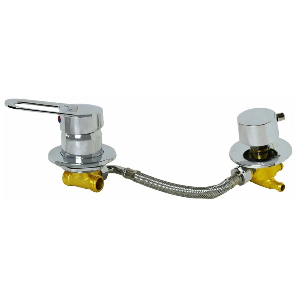 2 части смесителя (миксер и селектор) соединяются гибким шлангом (входит в комплект).