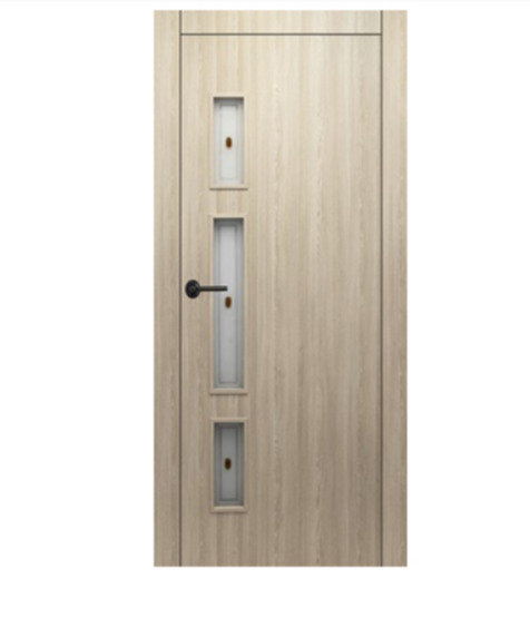 Ламинированные двери эконом-класса состоят из деревянного или МДФ-каркаса. С двух сторон каркас обклеен 3-4 мм МДФ-панелями с ламинирующей пленкой, имитирующей текстуру и цвет дерева. Для прочности полотно внутри заполнено сотовым наполнителем, а в местах установки ручек и замков усилено деревянными брусками. Такая конструкция делает двери прочными и легкими, снижая нагрузку на петли.