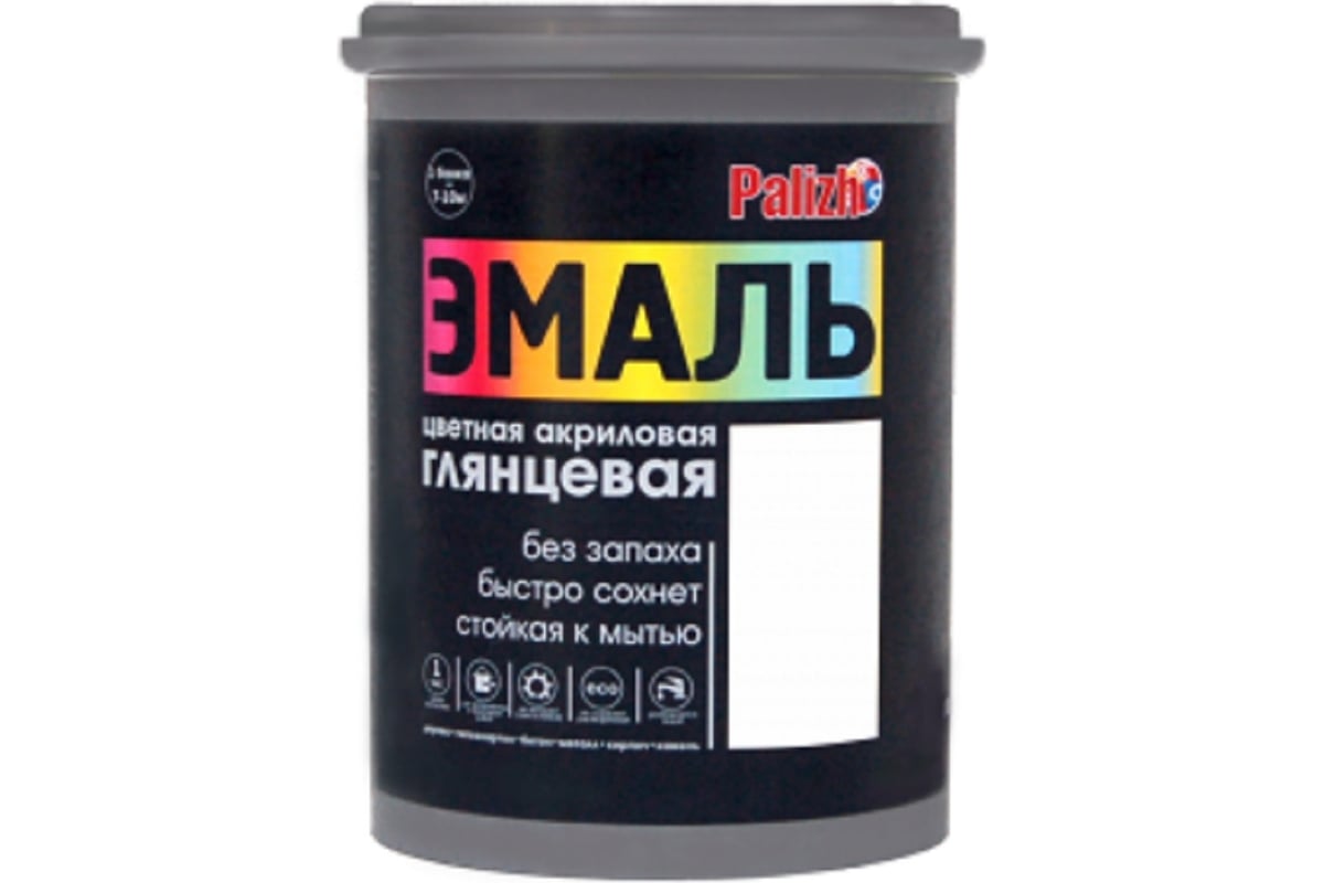 Акриловая глянцевая эмаль PALIZH белая, 1,1 кг, артикул 11604443, идеально подходит для окрашивания металлических, деревянных, бетонных и кирпичных поверхностей.
