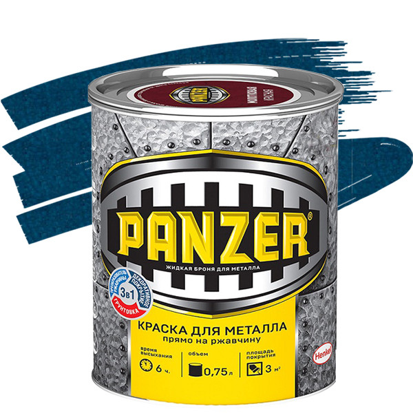Краска Panzer для металла - это преобразователь ржавчины, грунтовка и финишное покрытие в одной банке. Превосходная укрывистость краски позволяет получить идеальное покрытие металлической поверхности при нанесении всего одного слоя. Такое упрощение технологии покраски экономит до 1/2 стоимости работ. Краска обладает хорошей адгезией к ржавчине, препятствует дальнейшему образованию коррозии. Температура эксплуатации от -40° до +80°.