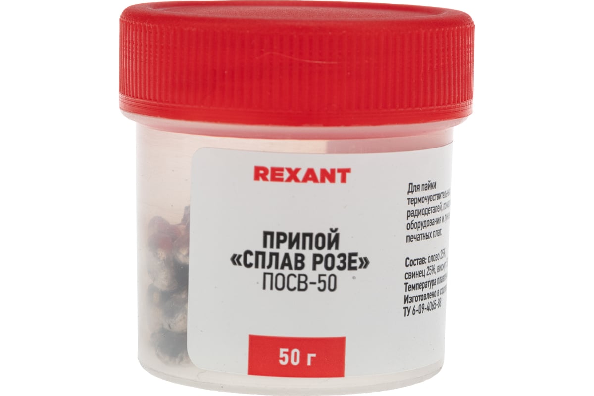 Сплав Розе REXANT применяется преимущественно для пайки деталей чувствительных к перегреву, а также для пайки алюминия с медью, сплавов алюминия между собой, никеля, латуни, бронзы, медных и медно-никелевых сплавов с посеребренной керамикой, посеребренных деталей и ювелирных изделий.