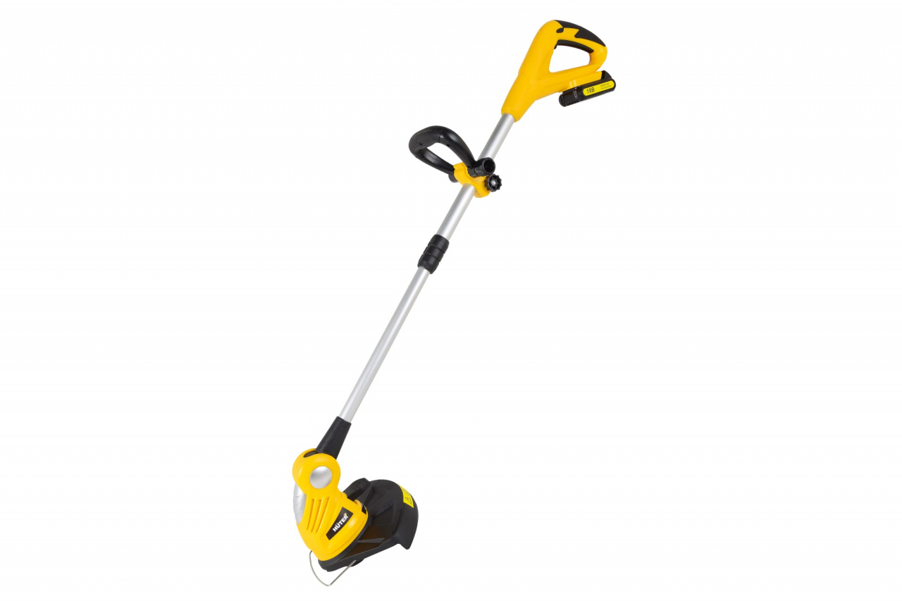 Аккумуляторный триммер Huter GET-18-2Li 70/1/9 применяется для скашивания высокой травы на садовых участках, газонах.