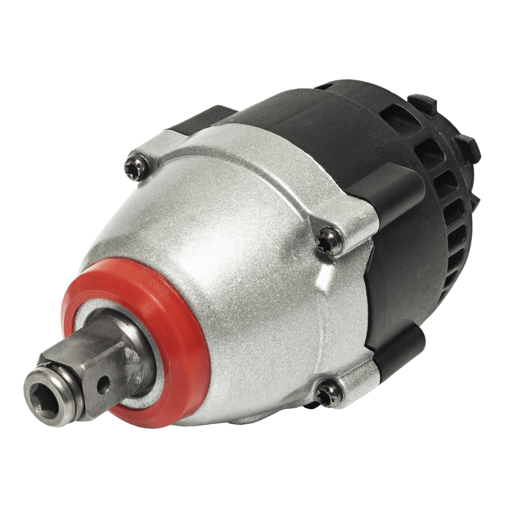 Ударный тангенциальный гайковерт с квадратным хвостовиком 1/2" дюйма работает со стандартной оснасткой - торцевыми головками, Вращающий момент образуется за счет соударения на каждом обороте в ударной муфте частей редуктора, называемых молот и наковальня. За счет разницы масс самого инструмента и закручиваемой оснастки, которая обычно достигает 100 и более раз и возникает эффект, когда крупный крепеж можно завернуть или отвернуть, всего лишь слегка придерживая инструмент. Сила затяжки регулируется за счет ограничения длительности воздействия (количества ударов). Реактивный момент отсутствует.