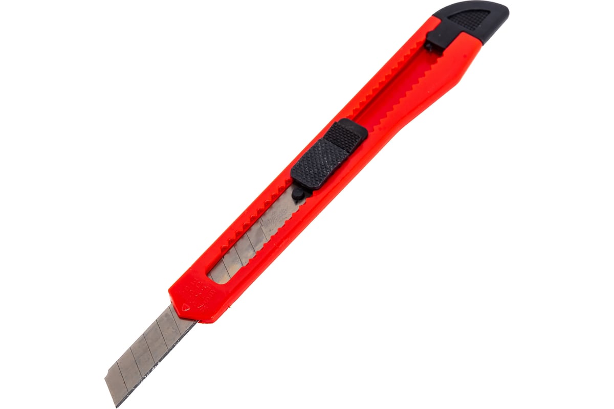 Нож, 9 мм, выдвижное лезвие MATRIX 78911 обладает небольшой шириной полотна, что позволяет эффективно резать толстые материалы в углах стен и других ограниченных пространствах.