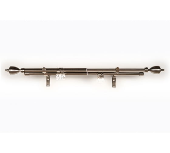 Карниз 1-рядный раздвижной MAGELLAN «Ферзь» выполнен из нержавеющей стали и предназначен для штор. Его длина регулируется в диапазоне от 1,6 до 3,0 метров, что делает его универсальным для окон разной ширины. Карниз оснащен металлическими кольцами и наконечниками в форме «ферзя», а также комплектуется кронштейнами для крепления. Стильный и долговечный, он станет отличным выбором для оформления интерьера.