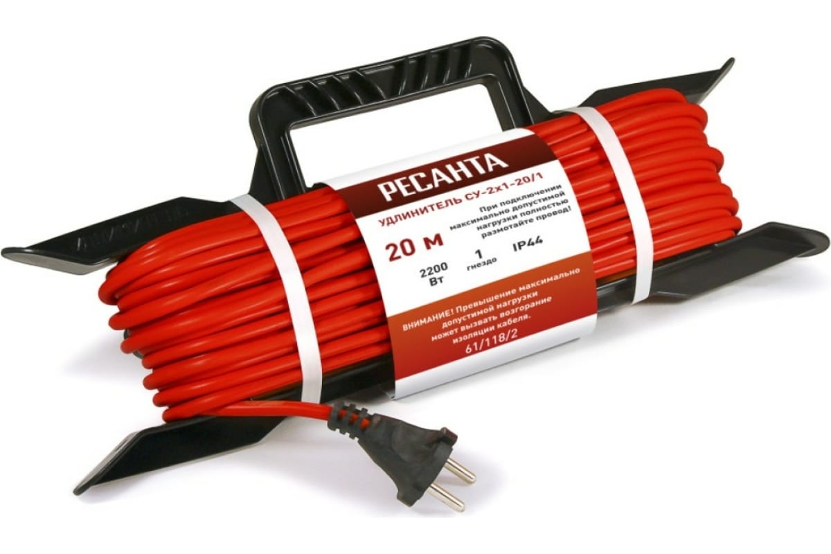 Мощность провода Ресанта СУ-2х1-20/1 составляет 2,2 кВт, поэтому можно подключать триммер, перфоратор, болгарку или другой электроинструмент. При использовании удлинителя в смотанном виде мощность подключённых приборов не должна превышать 1,1 кВт, иначе провод будет греться, что может привести к его деформации. Благодаря IP44, использовать удлинитель можно в условиях повышенной влажности, но прямое попадание воды недопустимо.