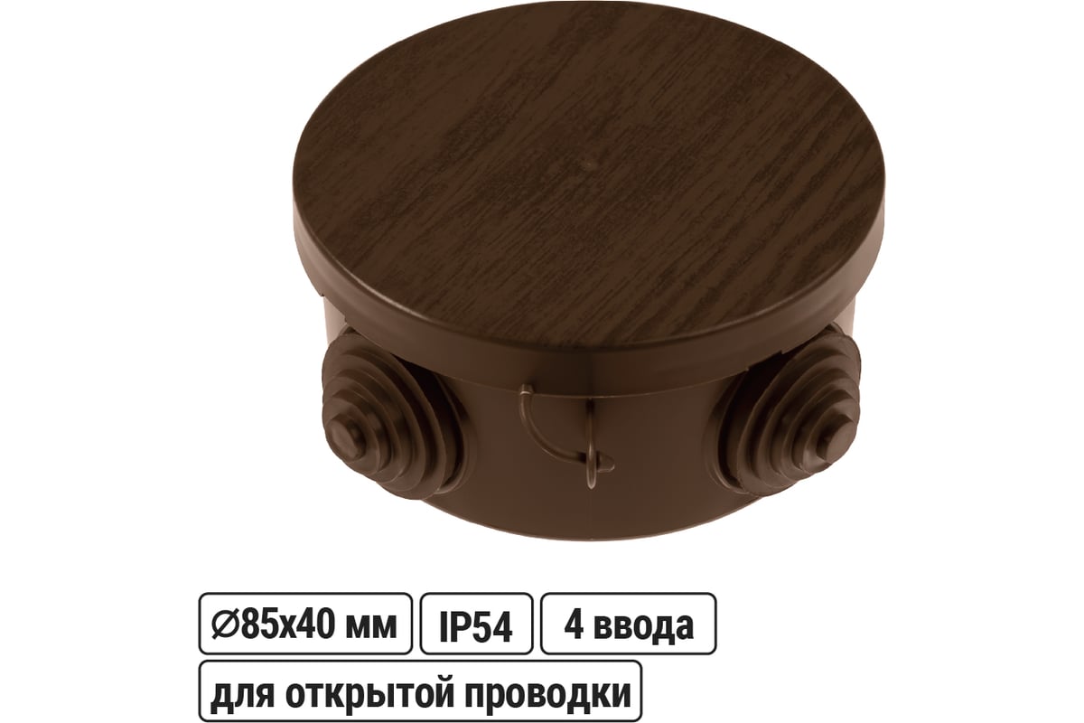 На коробке есть специальные поводки для проводов, что облегчает установку и обеспечивает надежное соединение. Коробка поставляется в гофрокартонной упаковке, которая защищает её при транспортировке. В упаковке одна коробка, цвет — венге. Выбрав распаечную коробку OP D85х40 мм от TDM ELECTRIC, вы получите качественное решение для организации проводов в вашем доме.
