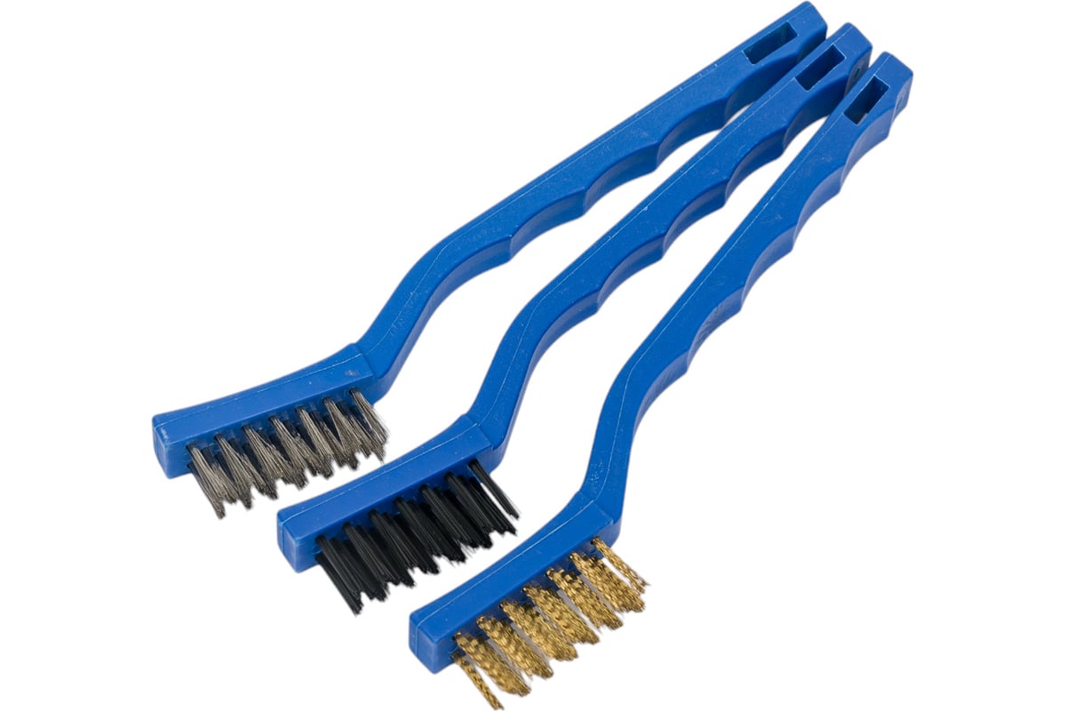 Набор малых щеток применяется для очистки деревянных, металлических и других поверхностей от старых лакокрасочных покрытий, ржавчины и иных загрязнений. Стальная проволока повышенной жесткости надежно закреплена в пластиковом основании. Щетки подходят для профессионального и бытового использования.