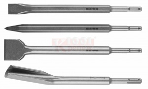 4 зубила: пикообразное, плоское 20 мм, плоское широкое 40 мм, канальное.