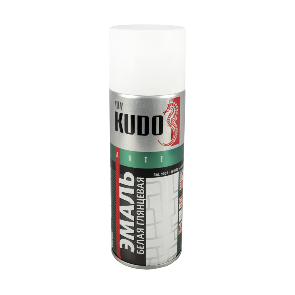 Краска-аэрозоль 520мл белая глянцевая KUDO 1001