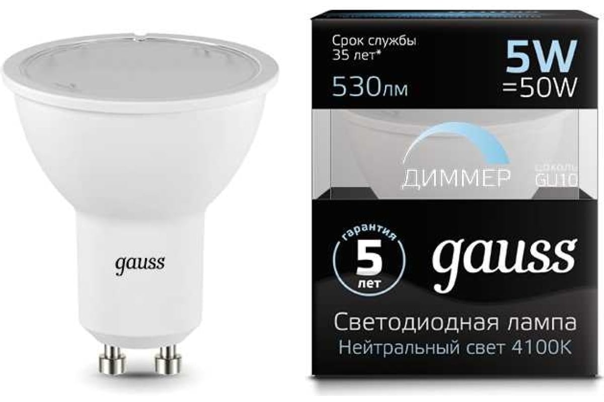 Лампа Gauss LED MR16 GU10-dim 5W 530lm 4100K 101506205-D - это выгодная и качественная замена галогенным лампам. Имеет отличные технические показатели.