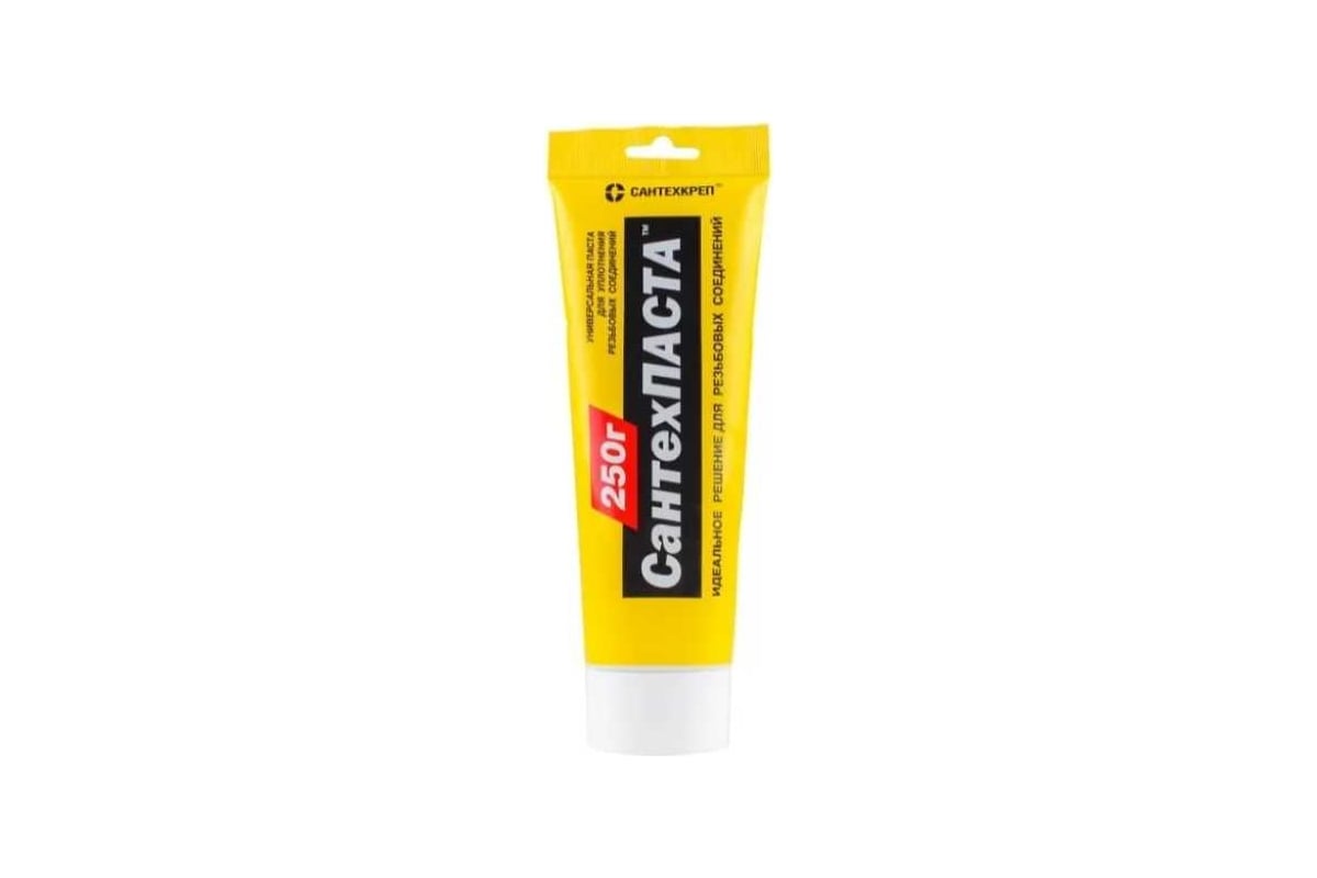 Паста для уплотнения резьбовых соединений Сантехкреп СантехПаста 250 гр. в тубе 2.2.3. - это универсальный уплотнительный состав для герметизации резьбовых соединений в системах отопления, бытового и питьевого водоснабжения. Используется с льняными волокнами. Разрешена эксплуатация для систем с рабочим давлением до 8 атм и температурой до 140°С.