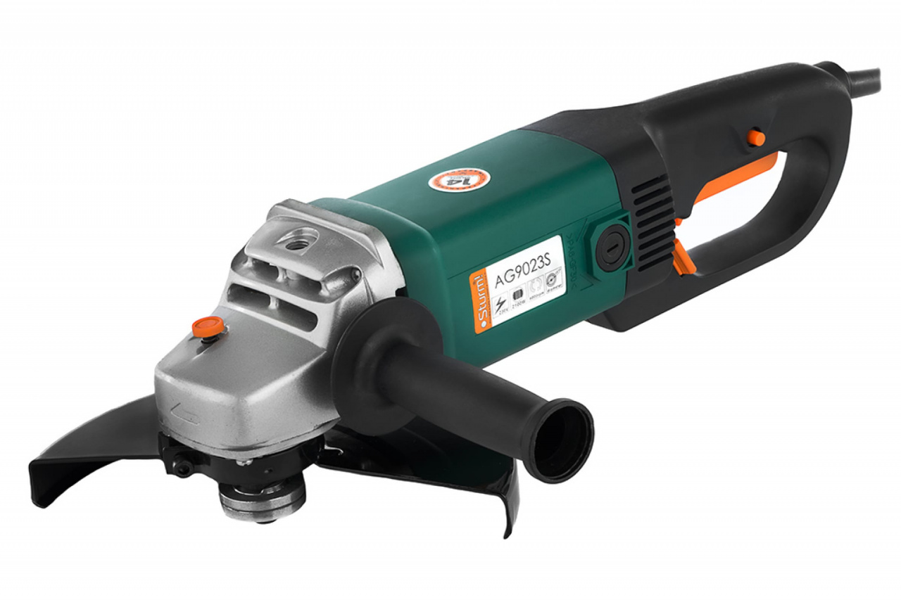 Угловая шлифмашина Sturm AG9023R - мощный инструмент для продолжительного использования. Применяется в строительно-отделочных работах для шлифовки, обдирки и резки материалов из металла, камня, бетона и др. Укомплектована электродвигателем мощностью 2100 Вт, скорость вращения 6000 об/мин. Рабочая насадка - диск диаметром 230 мм. Безопасная замена рабочего диска производится за счет фиксации шпинделя. Такие функции, как: блокировка кнопки включения, ограничение пускового тока обеспечивают безопасную и надежную работу с инструментом.