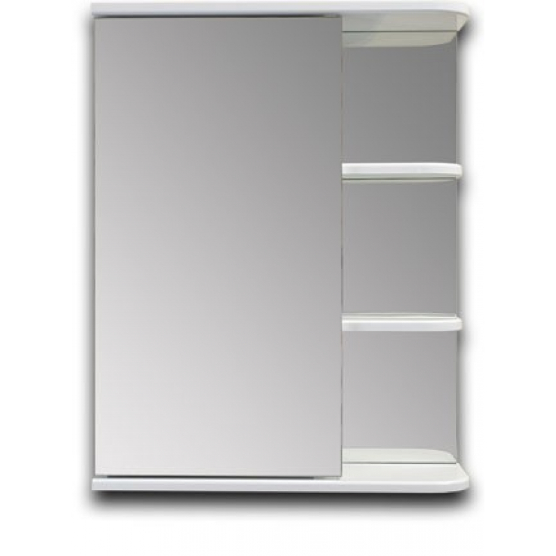 Зеркало-шкаф КЕРСА 01Л 55см полки справа, белое-это стильное и универсальное зеркало для ванной комнаты. Все элементы изделия изготовлены из прочных влагостойких материалов. Не боится повышенной влаги и перепада температур, следовательно надолго сохранит привлекательный вид.Край зеркала обработан фацетом, что придает изделию привлекательный вид. Полностью безопасно при монтаже и дальнейшем использовании.