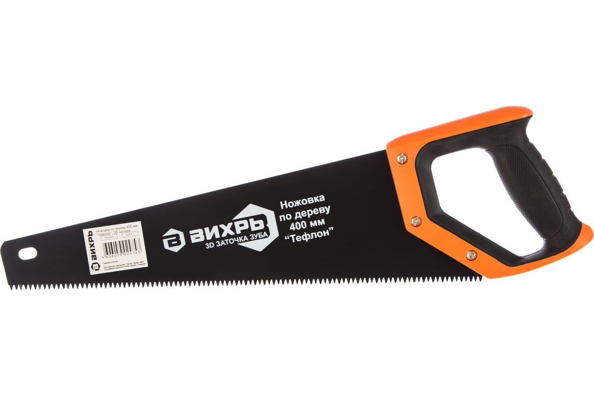 Ножовка ВИХРЬ 400 мм "Тефлон" с трехмерной заточкой и двухкомпонентной рукояткой применяется для продольного и поперечного пиления.