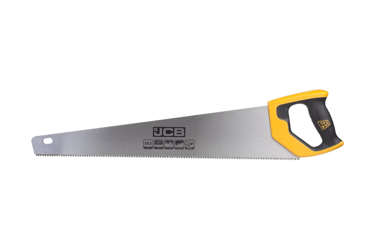 Ножовка по дереву JCB JSW002, длиной 550 мм, предназначена для обработки древесины мягких и твёрдых пород, а также ДСП и фанеры. Полотно изготовлено из прочной стали, что предотвращает его искривление и сохраняет форму. Эргономичная ручка из двухкомпонентного материала обеспечивает удобный захват и снижает нагрузку на руку пользователя.