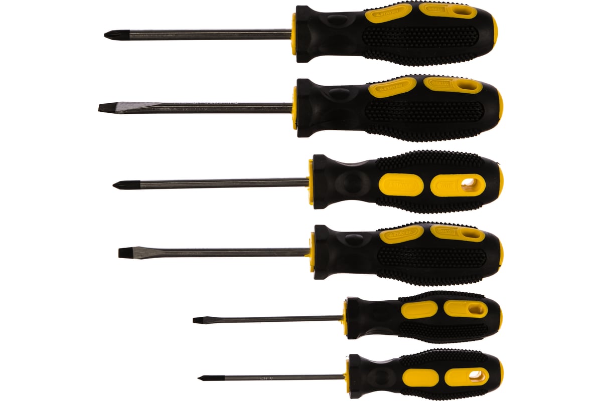 Набор отверток STAYER MASTER двухкомпонентная рукоятка, магнитный наконечник, 6шт 2513-H6_z01 предназначен для обслуживания резьбовых соединений. Отвертки имеют намагниченные наконечники со специальным защитным покрытием.