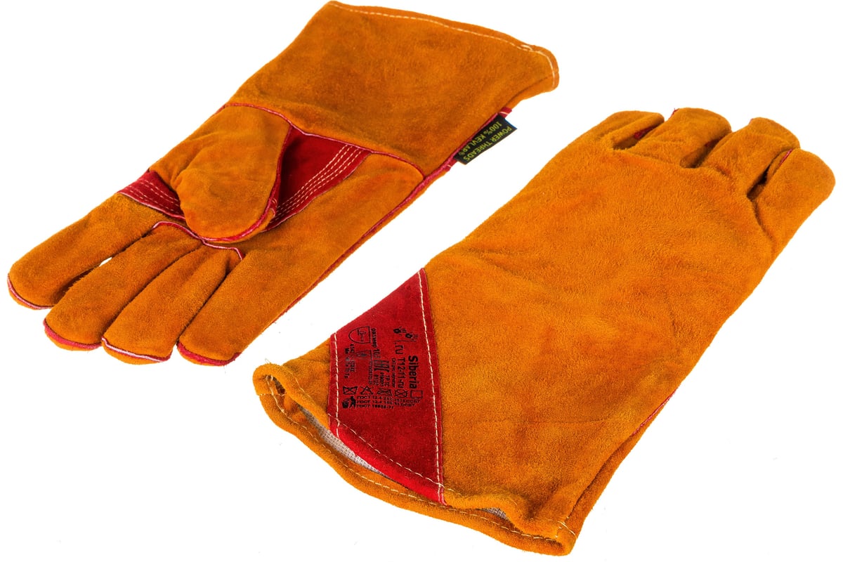 Усиленные спилковые краги защищают кисти рук от механических воздействий и высоких температур.
