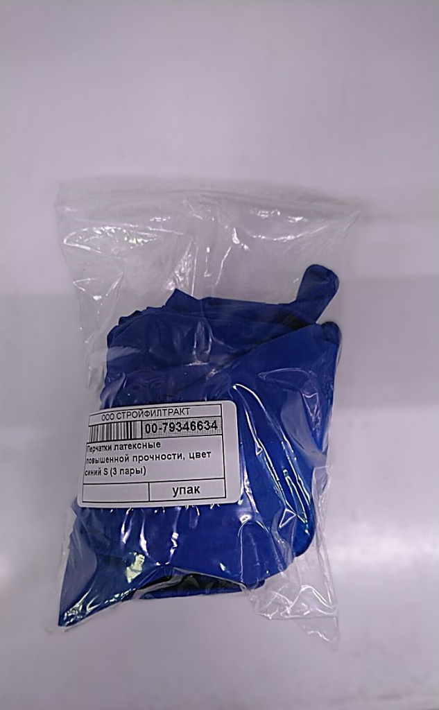 Перчатки латексные повышенной прочности, цвет синий S (3 пары)