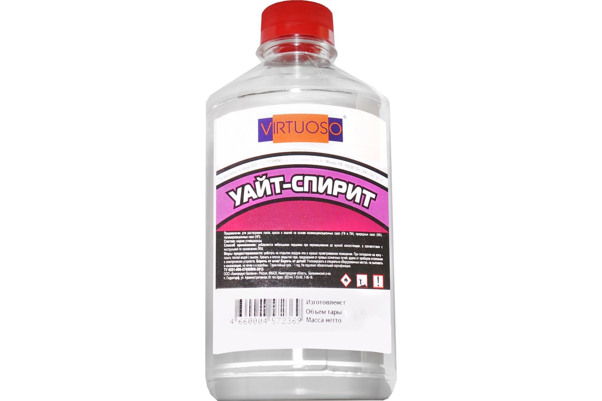 Уайт-спирит Virtuoso в ПЭТ-бутылке объемом 1 литр — универсальный растворитель для лакокрасочных материалов. Он малотоксичен, безопасен для кожи и отличается низкой пожароопасностью. Широко применяется в лакокрасочной промышленности. В частности, растворяет жирные алкиды, некоторые виды каучуков (бутилкаучук, циклокаучук), полибутилметакрилат и эпоксиэфиры, если в них много масел. Также используется для создания органодисперсий и разбавления масляных лаков.