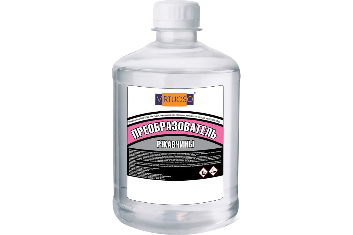 Преобразователь ржавчины VIRTUOSO ПЭТ 0.5 л 11606483 используется для удаления ржавчины с металлических поверхностей и одновременного фосфатирования металла при подготовке перед окраской. Состав взболтать перед применением, нанести на поверхность. Время воздействия 30 минут, при необходимости повторить, допускается выпадение осадка.