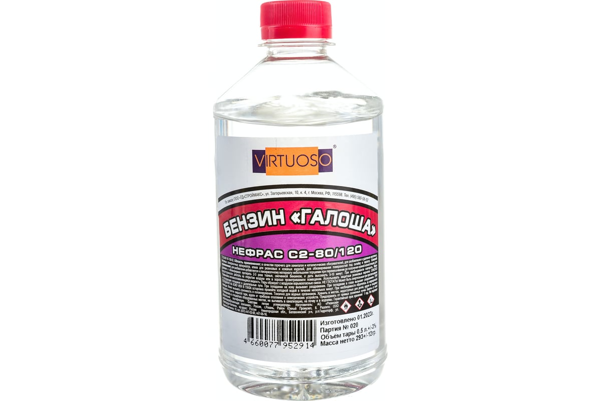 Нефрас VIRTUOSO бензин-галоша 0,5 л тех. ПЭТ 11602210 применяется при разбавлении лакокрасочных составов до требуемой массы, очищении инструментов, промывании запчастей и обезжиривании поверхностей.