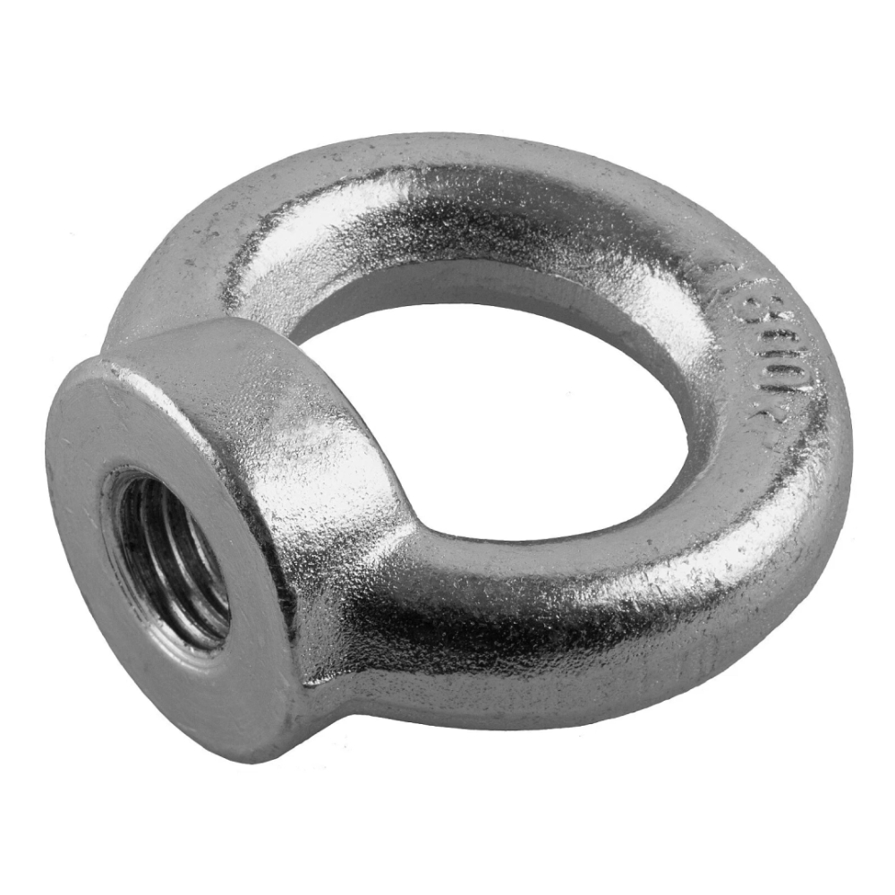 Рым-гайка представляет собой кольцо, в основании которого имеется сквозное отверстие с резьбой. Отверстие расположено под прямым углом к плоскости кольца.