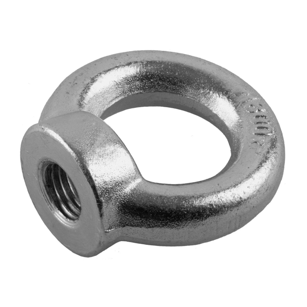 Рым-гайка представляет собой кольцо, в основании которого имеется сквозное отверстие с резьбой. Отверстие расположено под прямым углом к плоскости кольца.