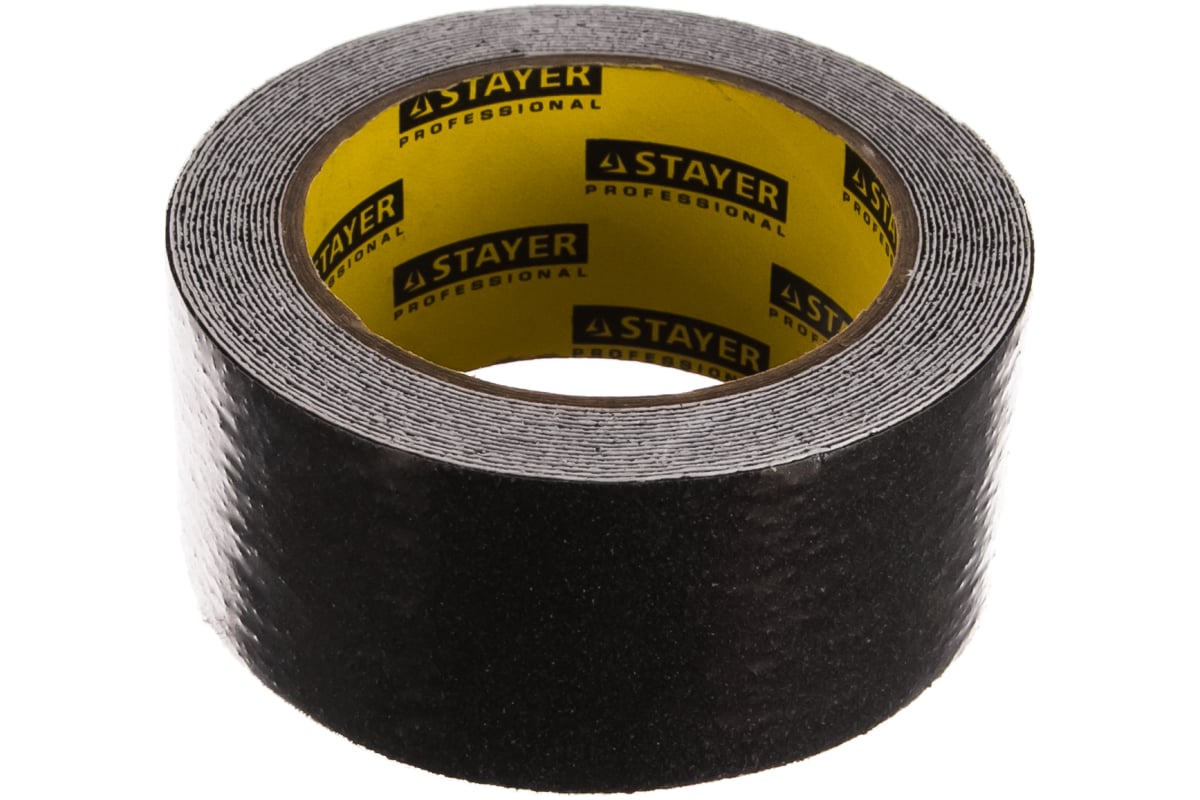 Клейкая противоскользящая лента STAYER 12270-50-05 черного цвета универсальна и подходит для разных поверхностей. Она надежно защищает от скольжения на лакированном дереве, плитке, мраморе и наливных полах. Благодаря акриловому клеевому слою, лента крепко держится и устойчива к низким температурам, истиранию и влаге. Лента поставляется в рулоне длиной 5 метров и шириной 50 мм.