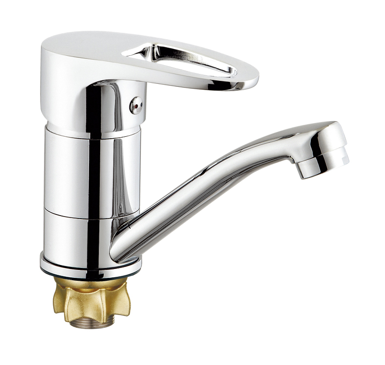 Смеситель для кухни и умывальника изготовлен по технологии литья под давлением из латуни. Корпус покрыт хромом. Излив плоский, поворотный на 360 градусов, его длина — 150 мм. Картридж имеет диаметр 40 мм. Для крепления используется гайка-корона. Длина подводки — 55 см.