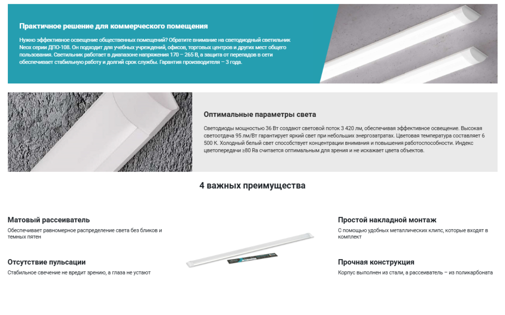 Светильник предназначен для внутреннего освещения основных и вспомогательных мест общего пользования в коммерческих помещениях.