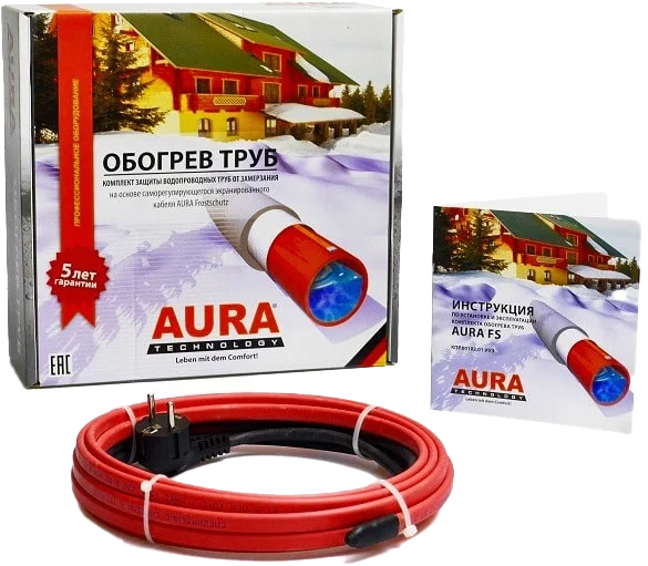 Комплект AURA FS 17 — саморегулирующийся греющий кабель, который эффективно обогревает и защищает от замерзания трубы бытовых водопроводов и канализации. Его можно устанавливать как на металлические, так и на пластиковые трубы, фиксируя снаружи. Для монтажа рекомендуется использовать металлизированную клейкую ленту.