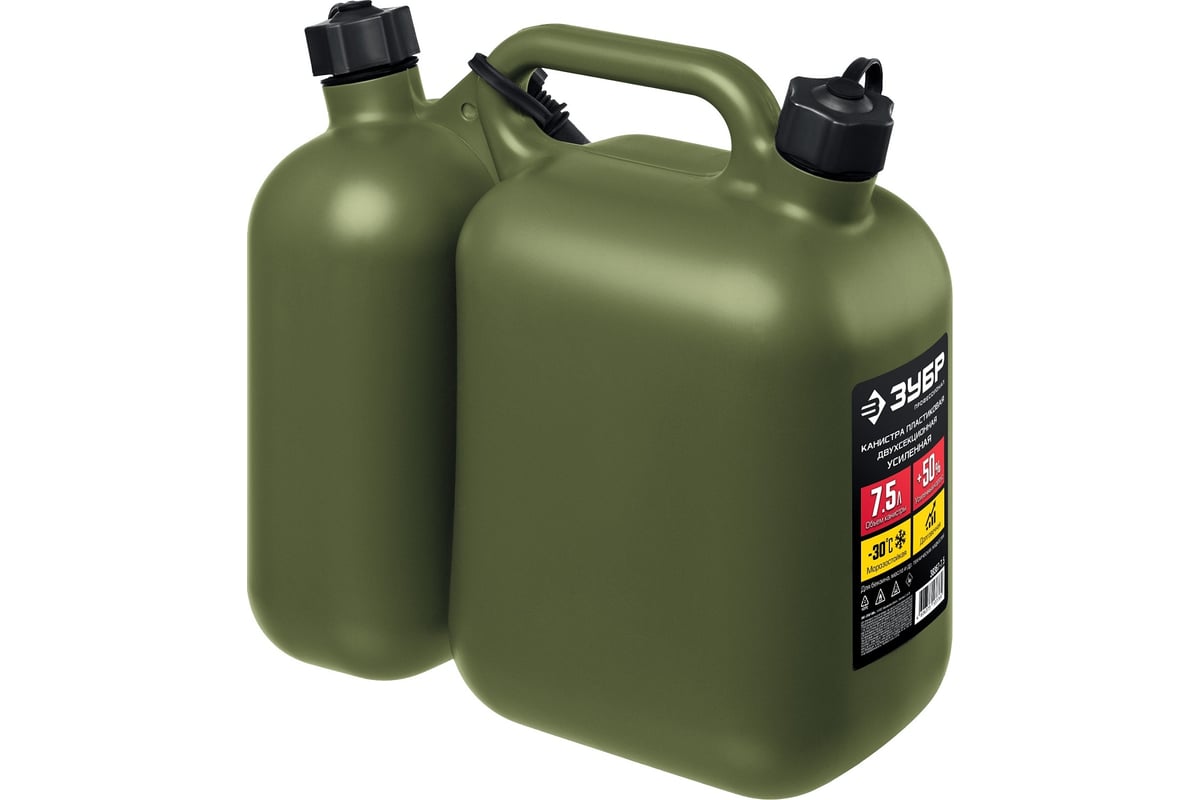 Пластиковая усиленная двухсекционная канистра ЗУБР Профессионал 5 + 2.5 л 38367-7.5 - легкая герметичная емкость для транспортировки технических жидкостей.