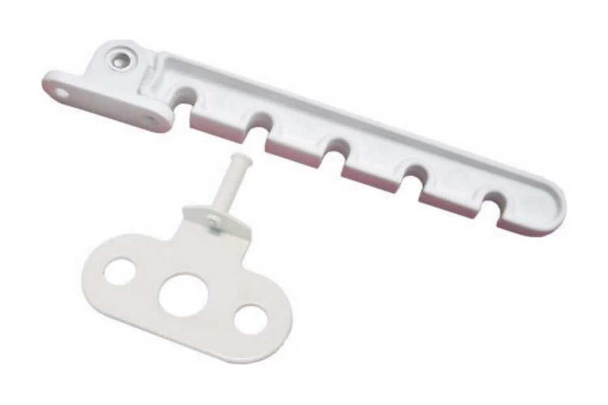 Ограничитель открывания оконной створки состоит из двух частей — гребенки (небольшая планка с углублениями) и фиксатора.