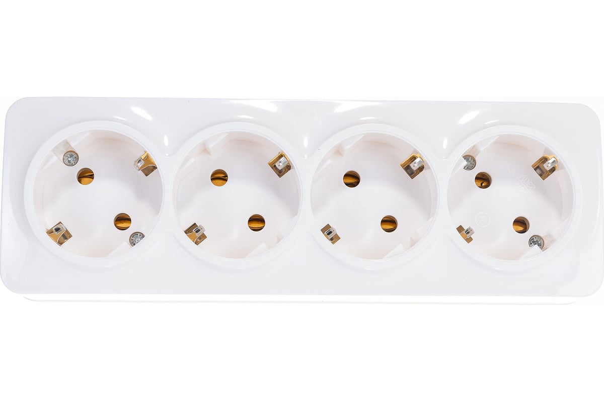 Розетка четырехместная ОП 16А IP20 с/з белая IONICH