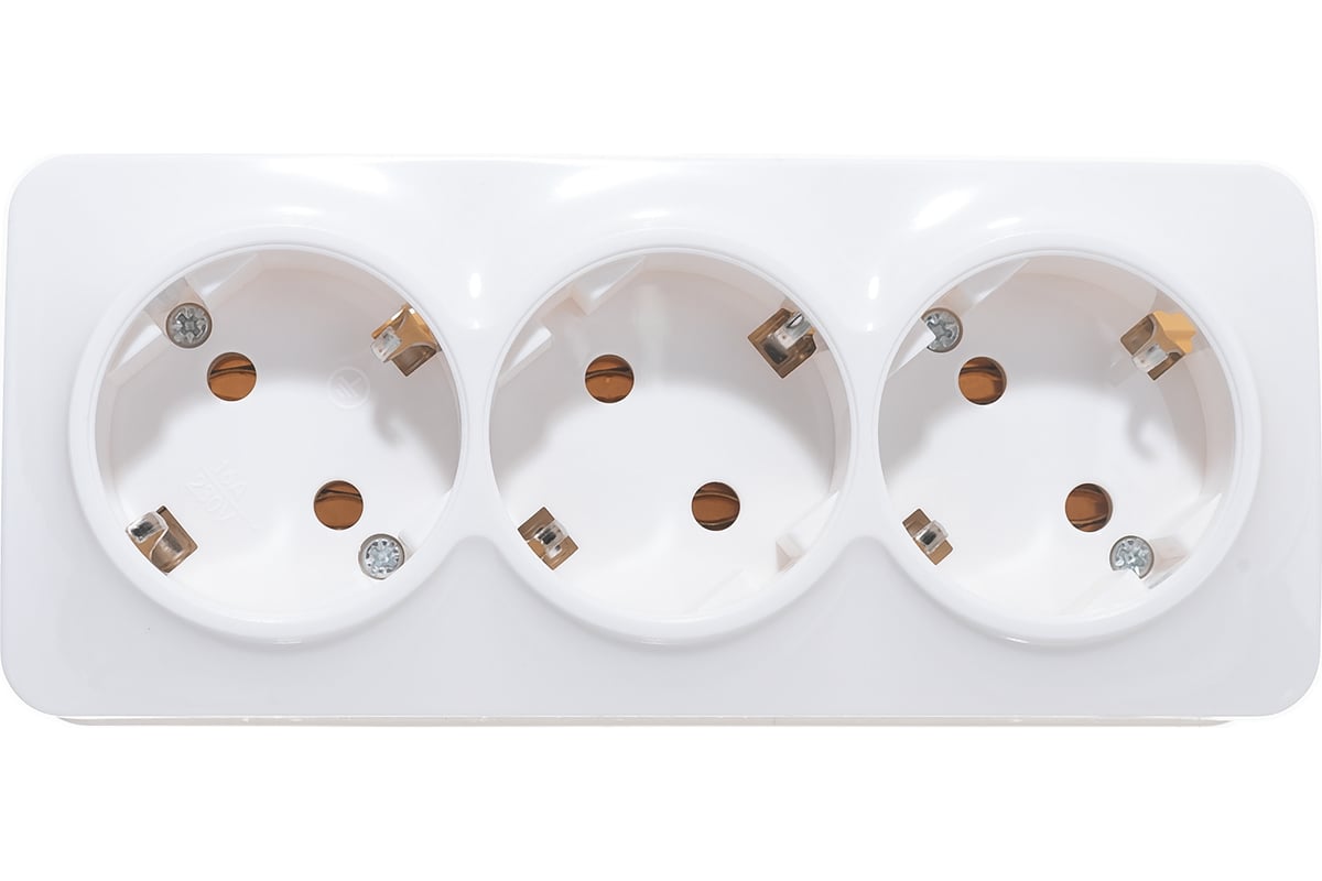 Розетка треххместная ОП 16А IP20 с/з белая IONICH