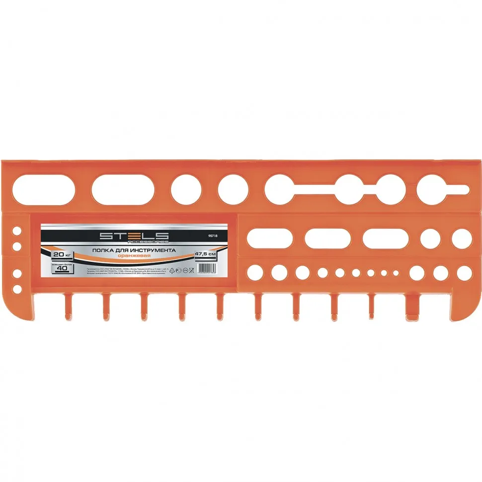 Оранжевая полка Stels 90718 длиной 475 мм используется для хранения инструментов. Благодаря ей все необходимое находится под рукой, а на рабочем месте царит порядок. Полка настенного типа позволяет компактно хранить инструменты в подвешенном виде.
