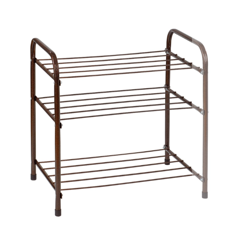 Этажерка серии Эконом служит для компактного хранения обуви. Имеет несколько ярусов и пластиковые колпачки на ножках, защищающие пол от механических повреждений.